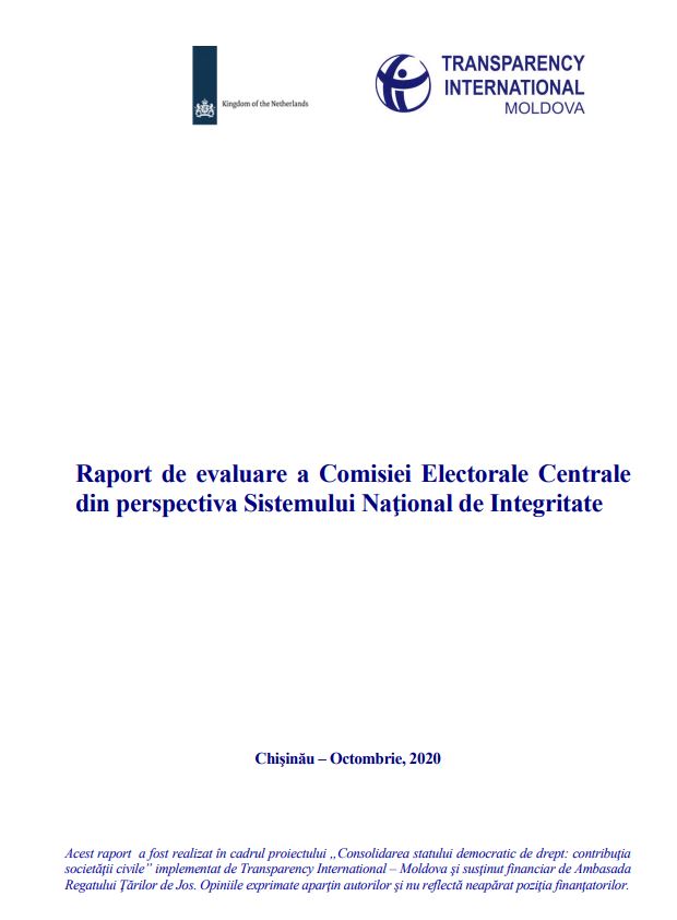 RAPORT DE EVALUARE A COMISIEI ELECTORALE CENTRALE DIN PERSPECTIVA SISTEMULUI NAŢIONAL DE INTEGRITATE